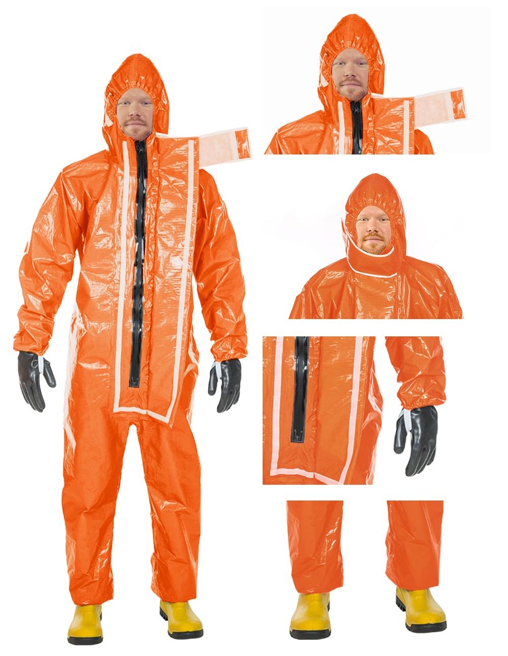 The suit is made from our CLF material, which consists of a multi-layer durable barrier film and a moisture-absorbing inner fleece, providing the wearer with maximum comfort and optimum protection. It protects against a range of hazardous chemicals, including acids, alkalis and organic chemicals. It is extremely quiet and ideally suited for use in hazardous areas thanks to its excellent antistatic properties. It meets the requirements for the highest class biobarrier defined in the standard and theref