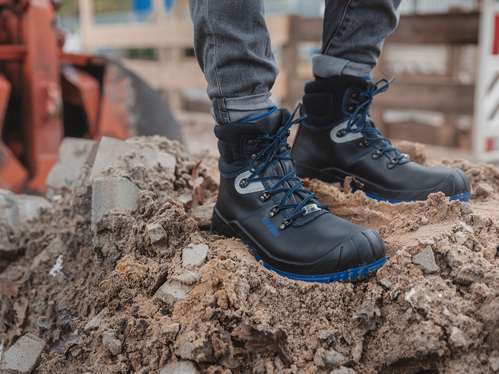 There is now good news for all wearers with very wide feet: The extra-wide fit of the ALESSIO steel XXW Mid ESD S3 provides the necessary comfort. Pressing safety boots are a thing of the past! In addition, the hard-wearing boot with the striking blue sole scores points with an outer material made of hard-wearing cowhide and a breathable textile lining. The attached reflective material makes the wearer easily visible even in the dark. With an inserted steel toe cap and a steel midsole, the ESD-compatible safety boot provides the necessary protection against hazards from above or on the ground. On smooth surfaces, the SRC-certified coarse-tread PU/PU outsole provides stability thanks to its anti-slip properties. The polyurethane toe protection prevents premature wear and tear, and the padded tongue guarantees an all-round comfortable feel. The ALESSIO steel XXW Mid ESD S3 is available in sizes 36 to 50.