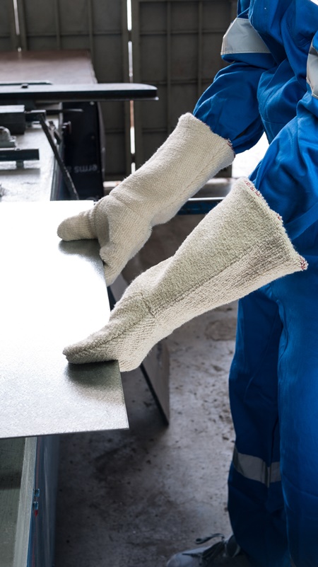 Breathable, natural coloured cotton. Robust material, excellent wearing comfort. Heat resistant up to 100°C. High tear resistance.