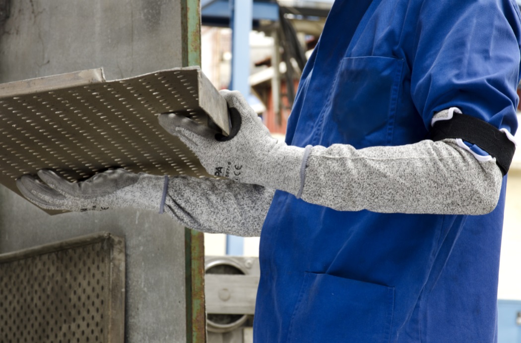 thumb hole made of polyamide fine knit for optimal hold for more safety, for better comfort and for good mobility of the hand. Velcro strap for width adjustment on the upper arm. Application Mechanical industry, automotive industry: mechanical maintenance work, assembly of fine sheet metal, vehicle assembly, handling of metal parts.