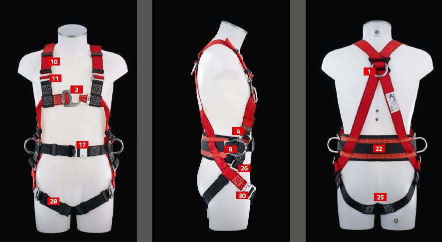 - 4. height adjustment of the front fall arrest eye