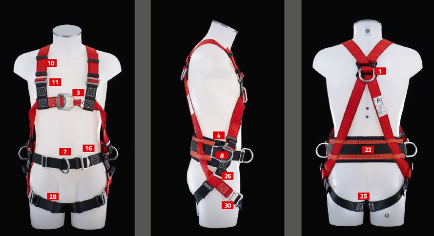 - 30. adjustment/fastener Leg straps with Quick- fastener