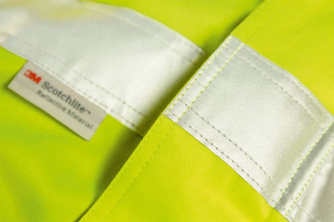 Standards: EN ISO 20471 class 3 EN 14058 class 3 EN ISO 13688 Other features: Upper material: 60% polyester, 40% cotton,with water-, oil- and dirt-repellent coatingcoating sleeve lining: 100% polyester Fiber fur: 70% polyacrylic/30% polyester Color: fluorescent yellow sizes: S-4XL water-, oil- and dirt-repellent throughhigh-quality coating reflective stripes made of 3M™ Scotchlite™ reflective material Reflective stripes around body, sleeves and on shoulders Jacket with particularly robust double seams pleasant textile feel, very good wearing comfort fiber fur collar concealed front zipper with flap knitted cuffs at the sleeves and hem good protection against cold, certified according to EN 14058 1 sleeve pocket 1 cell phone pocket 2 side pockets 2 inside pockets 1 Napoleon pocket VPE: 10 pieces